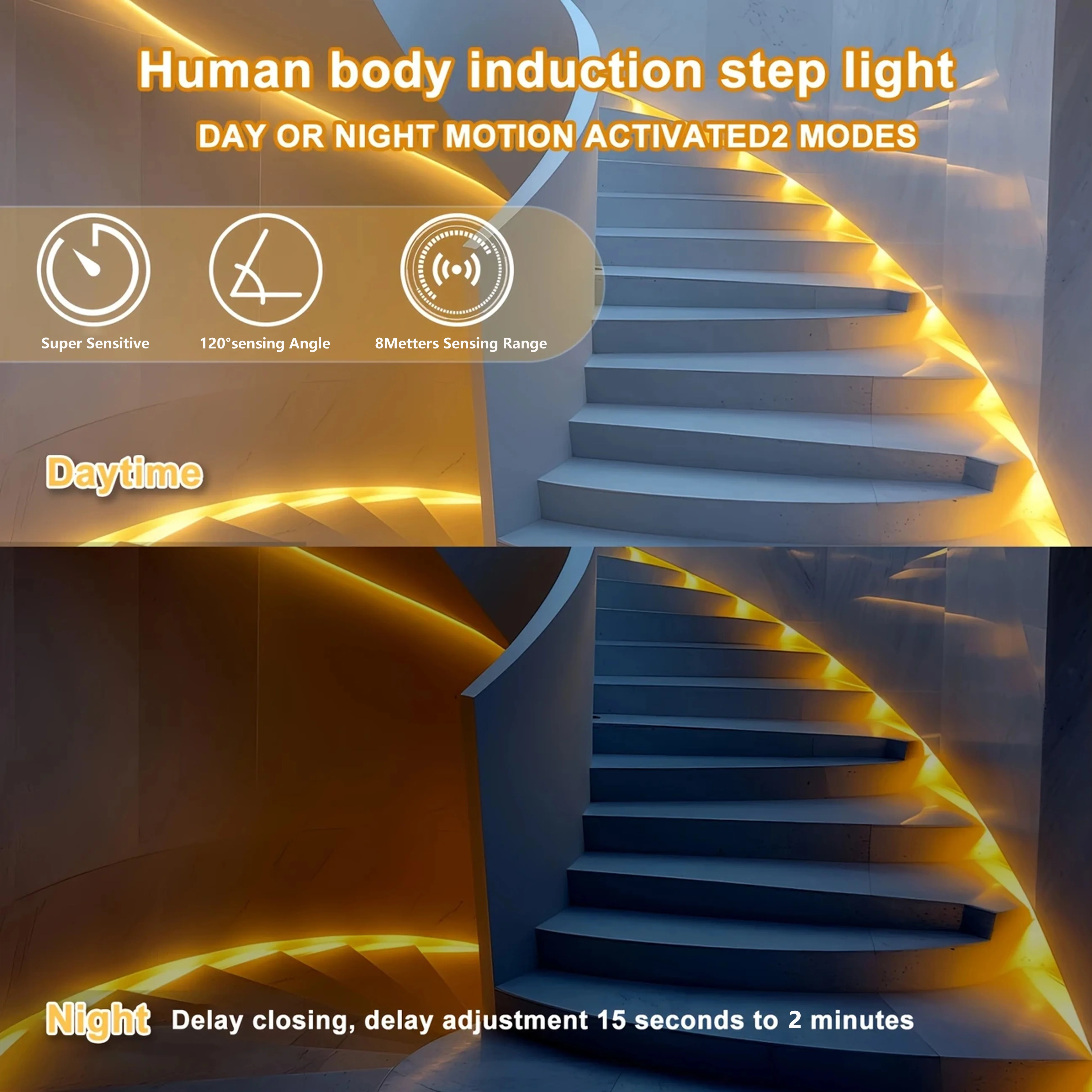 【 Motion Sensor Light Indoor Under Bed Lights】 Sensing range of the sensor is 9.84ft. When you enter the sensing range, the under bed lights will auto light up. It is very suitable for use as a under bed lights, free your hands and eliminating the need to look for switches in the dark. To save power, the auto closing function is also designed. When people go out of the sensing range 9.84ft(3m), the under bed lights will automatically turn off within 15/30/60/120s.